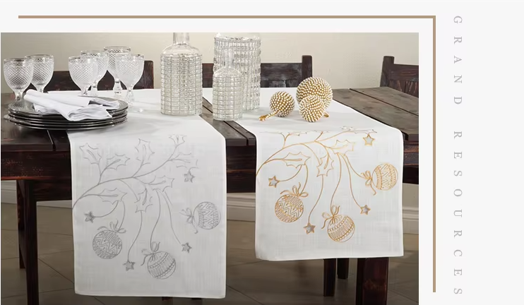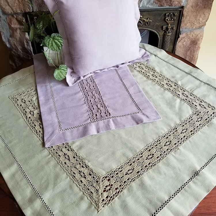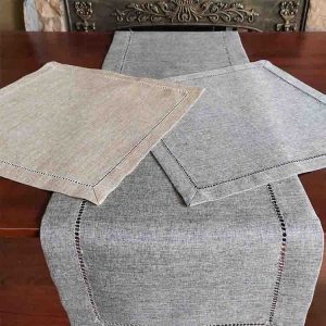 Deluxe linen embroidery hemstitch napkin table runner table cloth tablecloth for home wedding