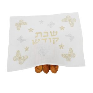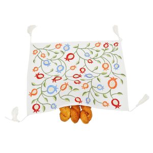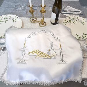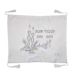 Shabbat Table Embroidered Pattern Israel Judaica Gift 20*16 Inch White Satin Challah Bread Cover