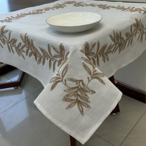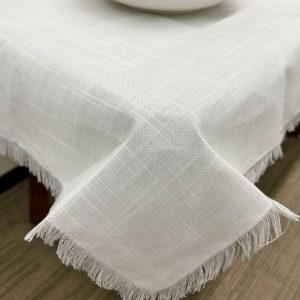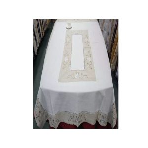 natural linen white rope embroidery tablecloth table runner for home hotel