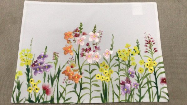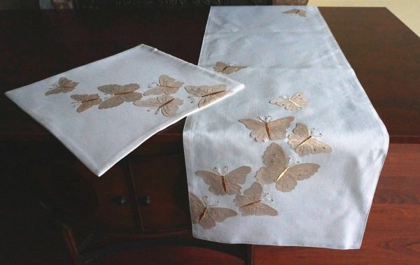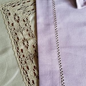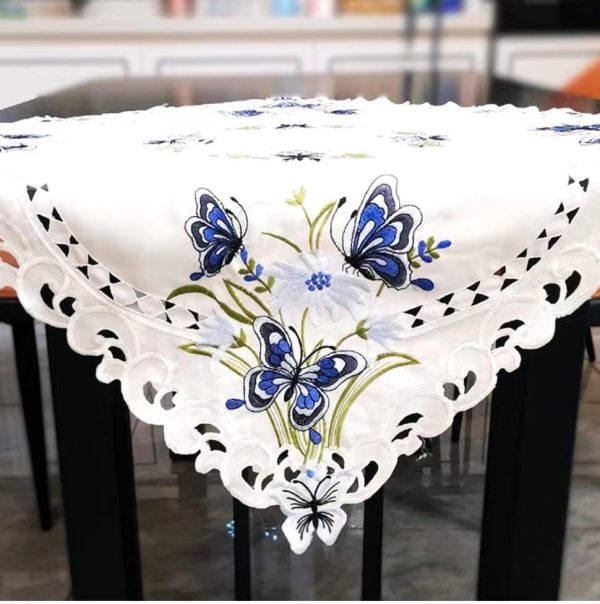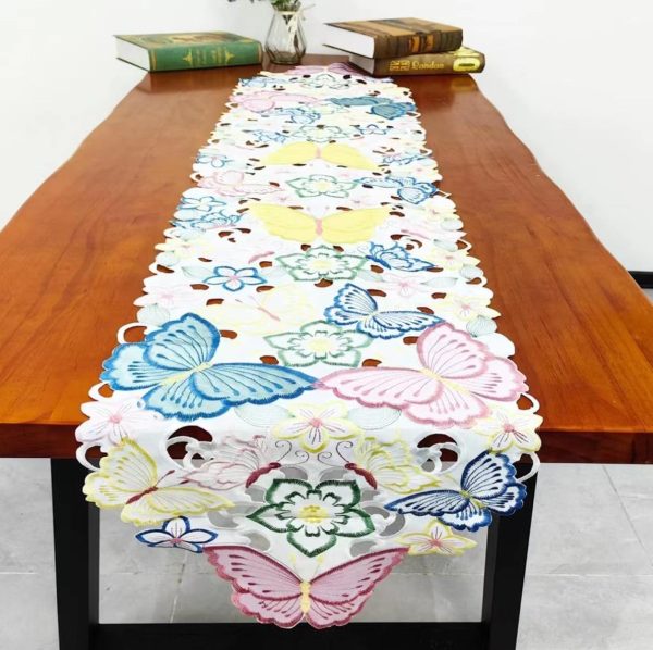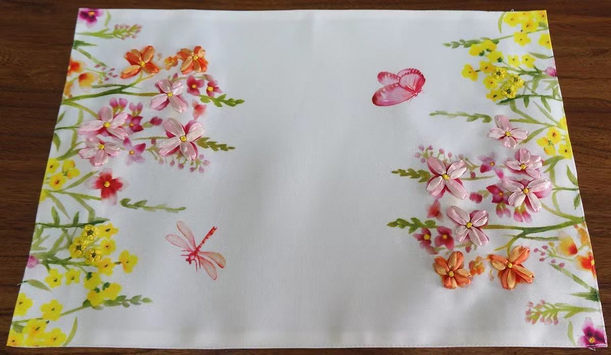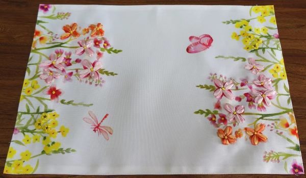 Long linen rectangle plain dyed sewing sequin border tablecloth