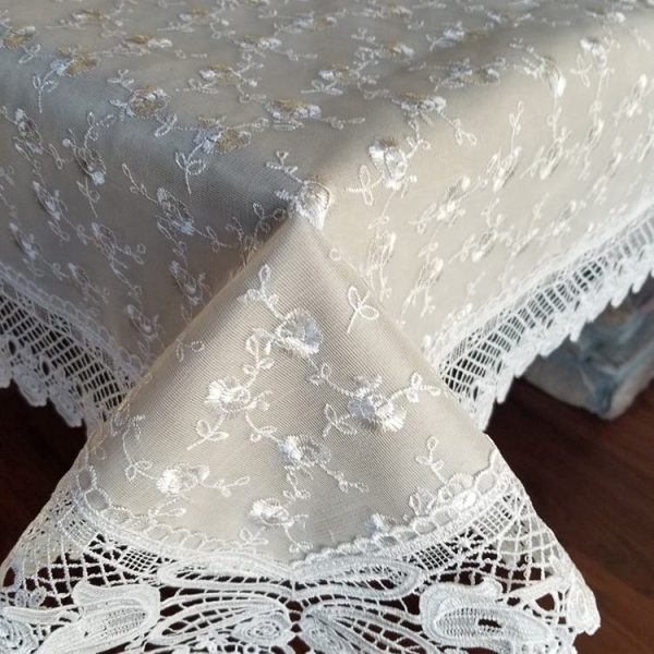 Chinese supply lace and embroidery lace border tablecloth