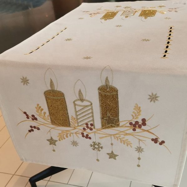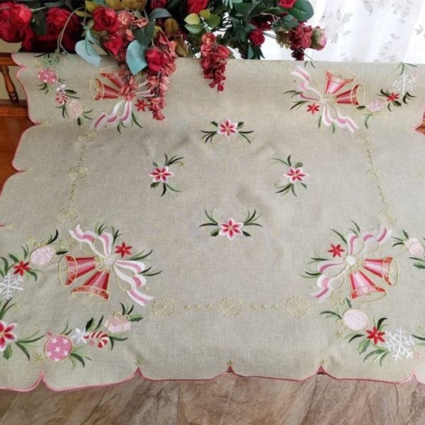 Wholesale cotton linen embroidered banquet candle tablecloth