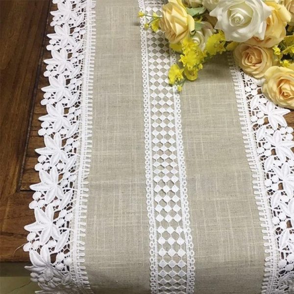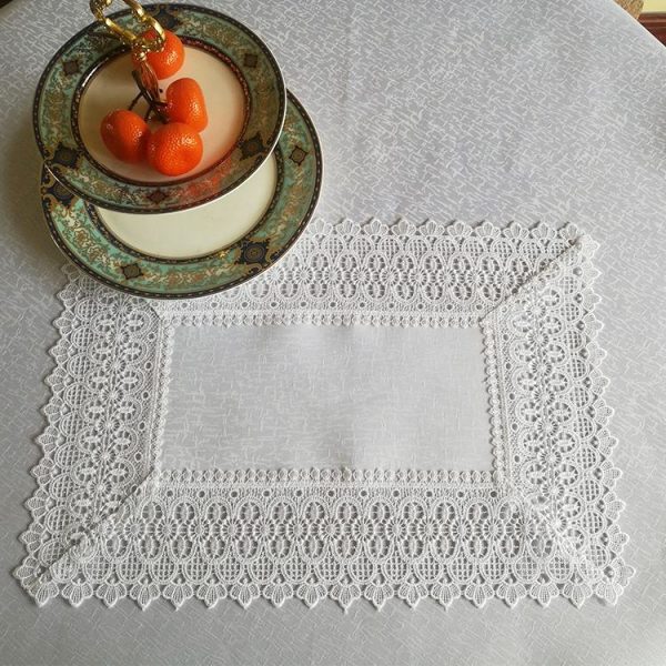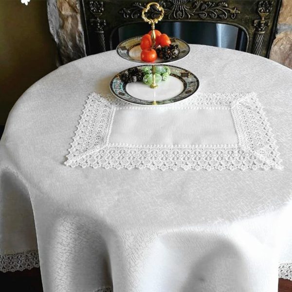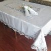 Custom polyester with linen embroidered lace border tablecloth
