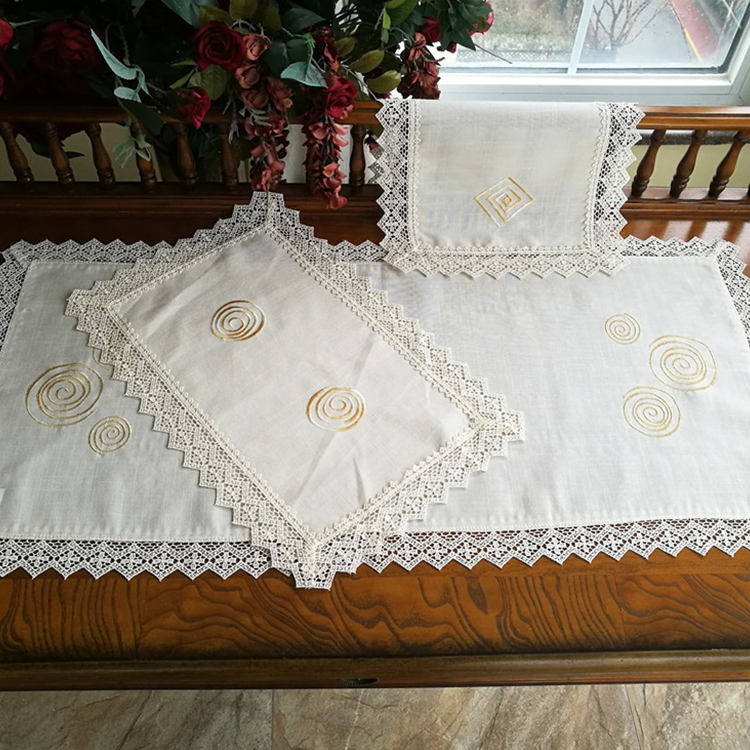 Durable white embroidery lace fabric tablecloths for wedding dining