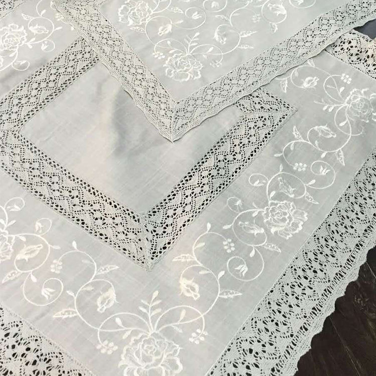 Factory wholesale christmas plain dyed oblong lace border table runner