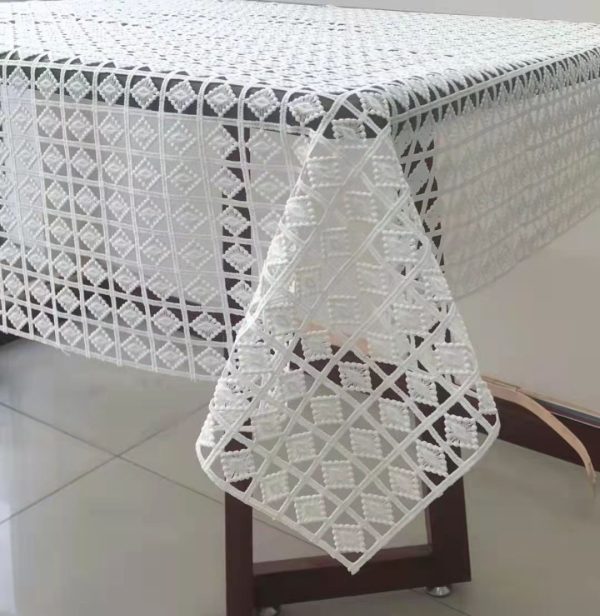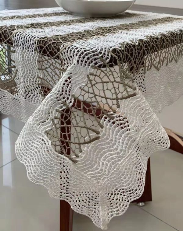 Long linen rectangle plain dyed sewing sequin border tablecloth
