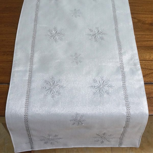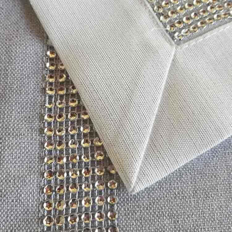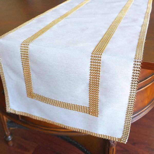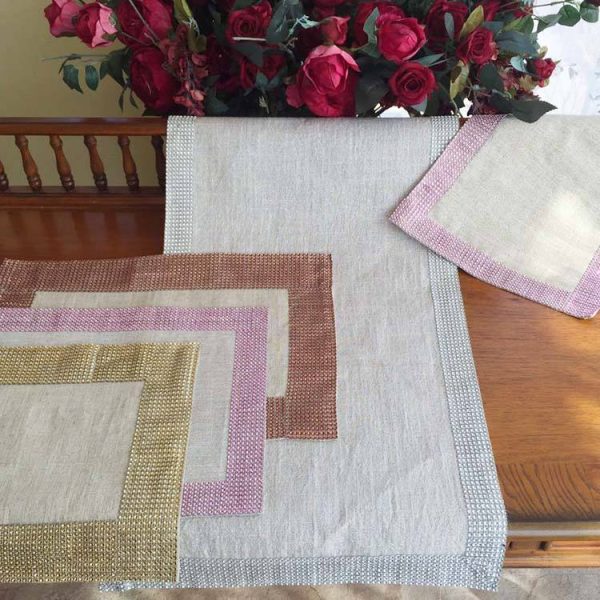 linen rectangle plain dyed diamond shinning sewing sequin border table runner tablecloth