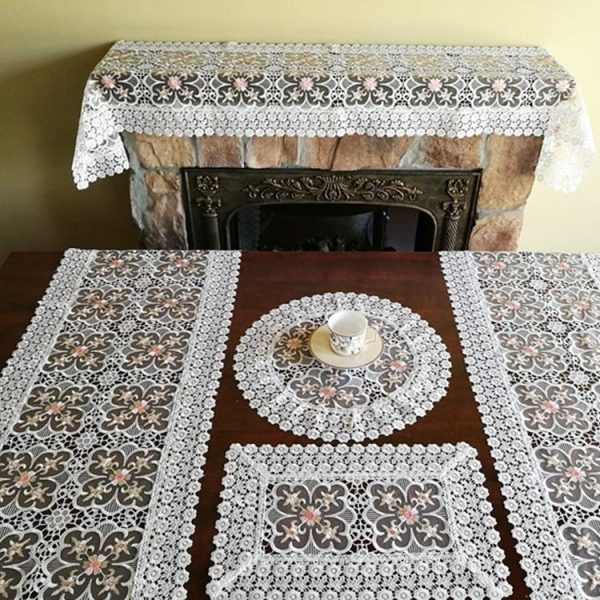 Modern designs embroidery tablecloth with lace wedding tablecloth