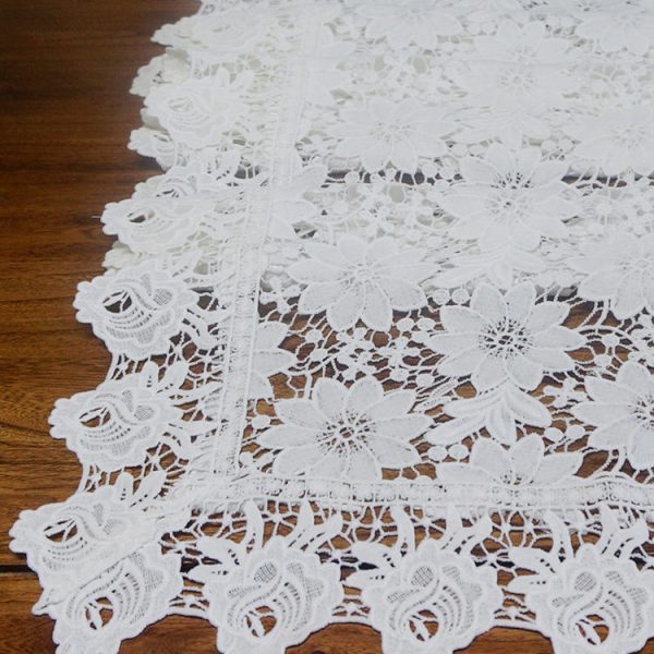 Oblong plain dyed lace border single layer tablecloth