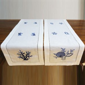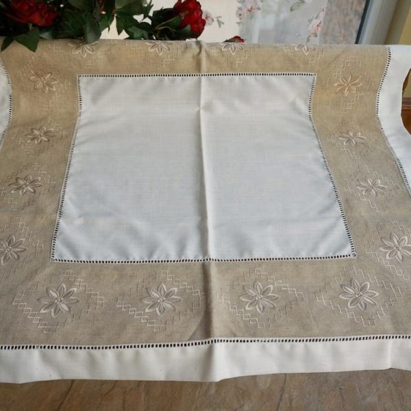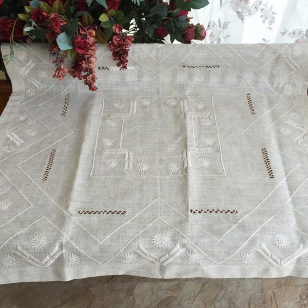 Wholesale rectangle linen embroidered hemstitch tablecloth